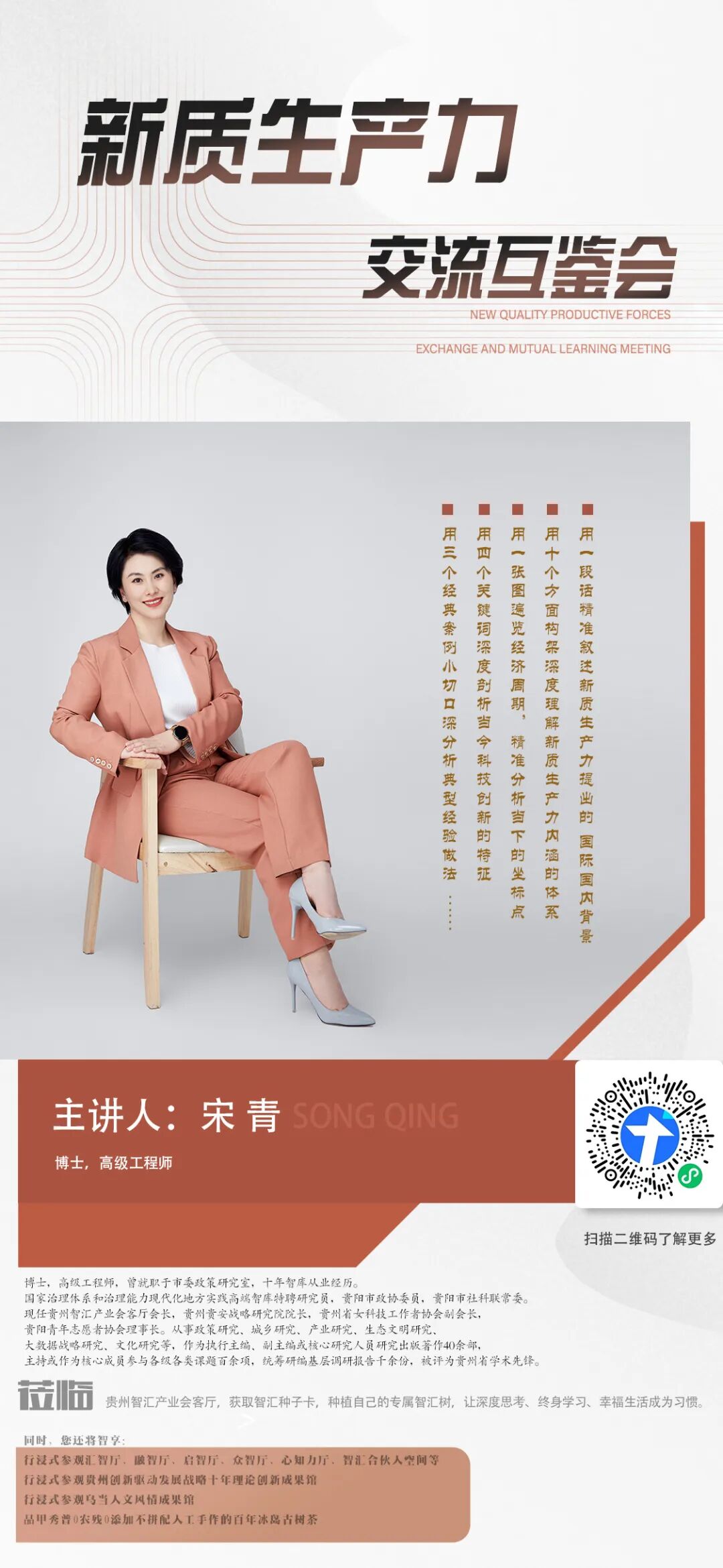 本期交流互鉴会由贵阳市乌当区政协副主席成龙主持,贵州智汇产业会客厅会长、贵州大学贵阳创新驱动发展战略研究院院长、贵州省女科技工作者协会副会长宋青聚焦『新质生产力』做专题交流互鉴,内容高度提炼、观点深度剖析,并从贵阳市政协委员的履职视角,与各行业民营企业代表进行思想碰撞、深度分享。